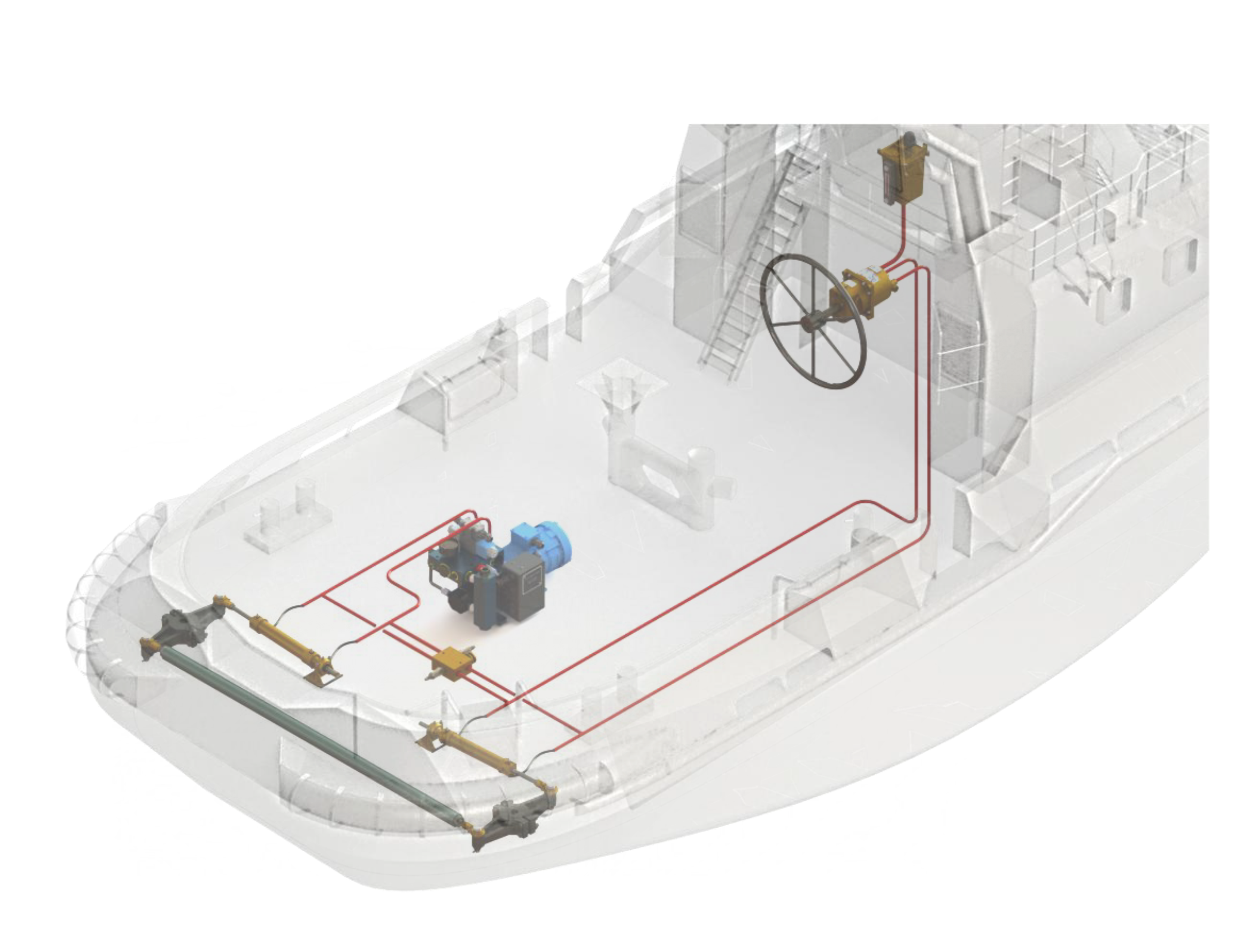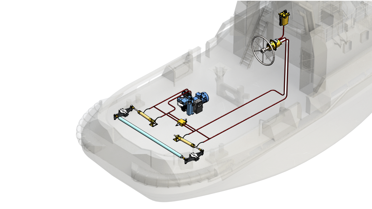 Generally, every system consists of a pair of steering cylinders, tillers, safety & bypass valve block and an HPU. The steering gear is best controlled by Kobelt's